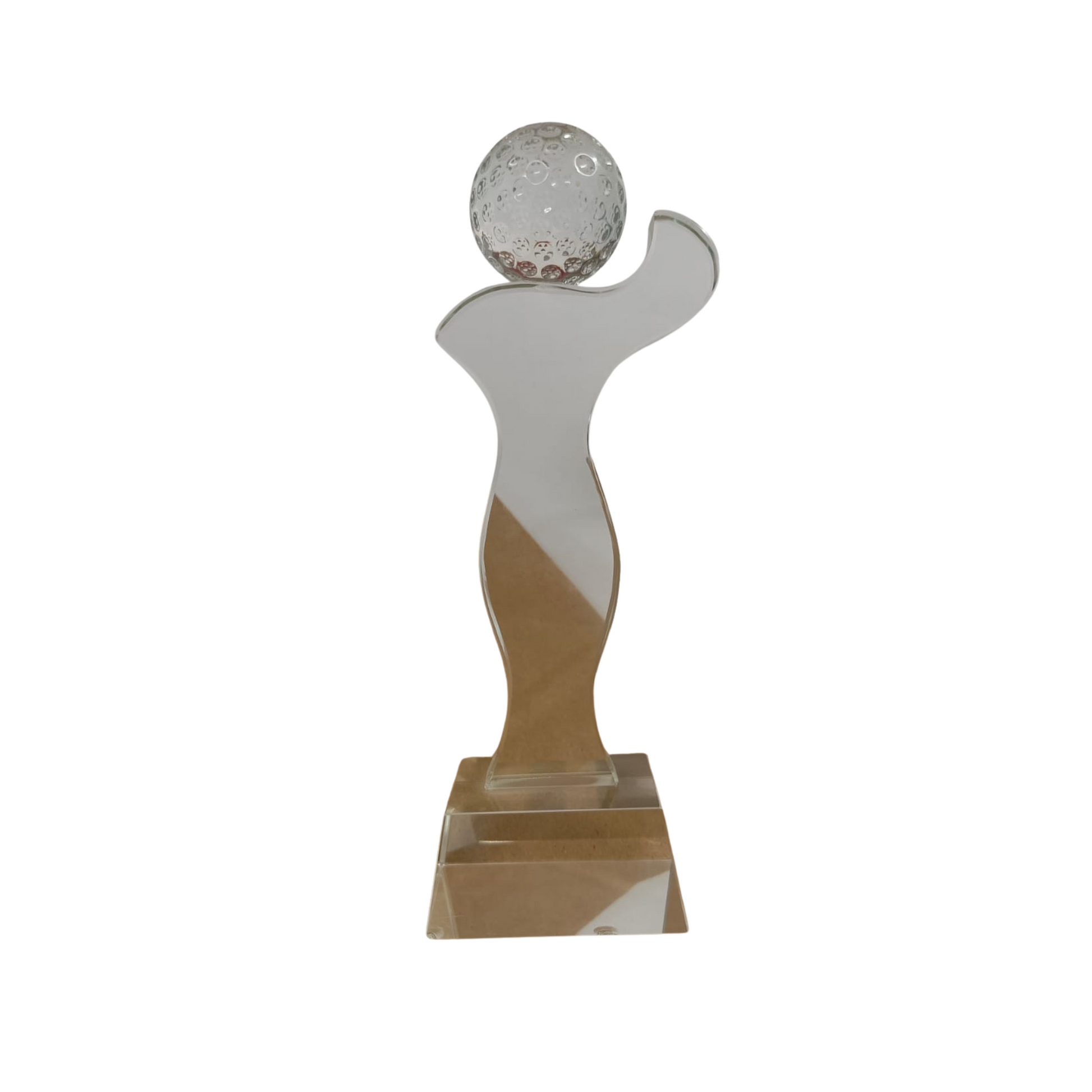 Contemporary Crystal Golf Trophy – Dimpled Ball on Curved Stand
