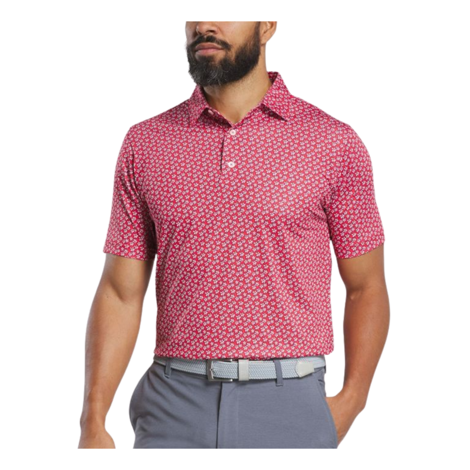 Make a subtle statement on the course with this modern, lightweight polo. Crafted in FootJoy’s high-tech ProDry® performance fabric, it delivers moisture-wicking comfort, UV protection, and easy-care convenience. The all-over floral sketch print adds personality while Four-way stretch ensures full range of motion. Built with anti-microbial treatment and durable double-stitched seams, it keeps you fresh and sharp round after round. Enhanced with UV defense and an extended tail for a polished tucked-in look.