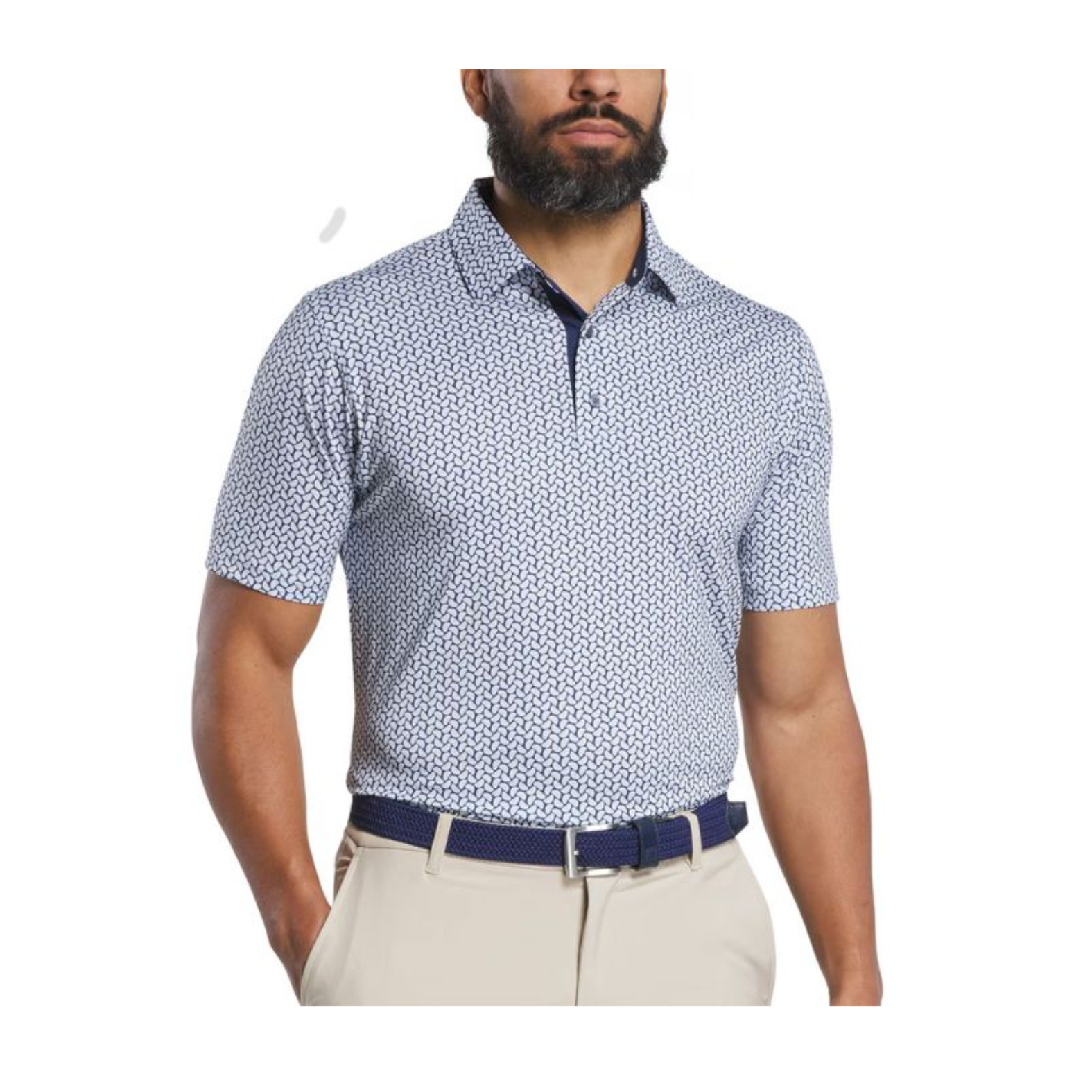 Refresh your game with the FootJoy Men’s Citrus Print Lisle Polo in White/Navy. Crafted from a high-performance blend of 88% polyester and 12% spandex, this polo delivers all-day comfort with four-way stretch, ProDry® moisture-wicking, anti-microbial odor control, and UV protection. Its all-over citrus print adds a bright, modern touch, while easy-care, wrinkle-resistant fabric and a clean athletic fit with extended back hem make it both stylish and functional on the course.
