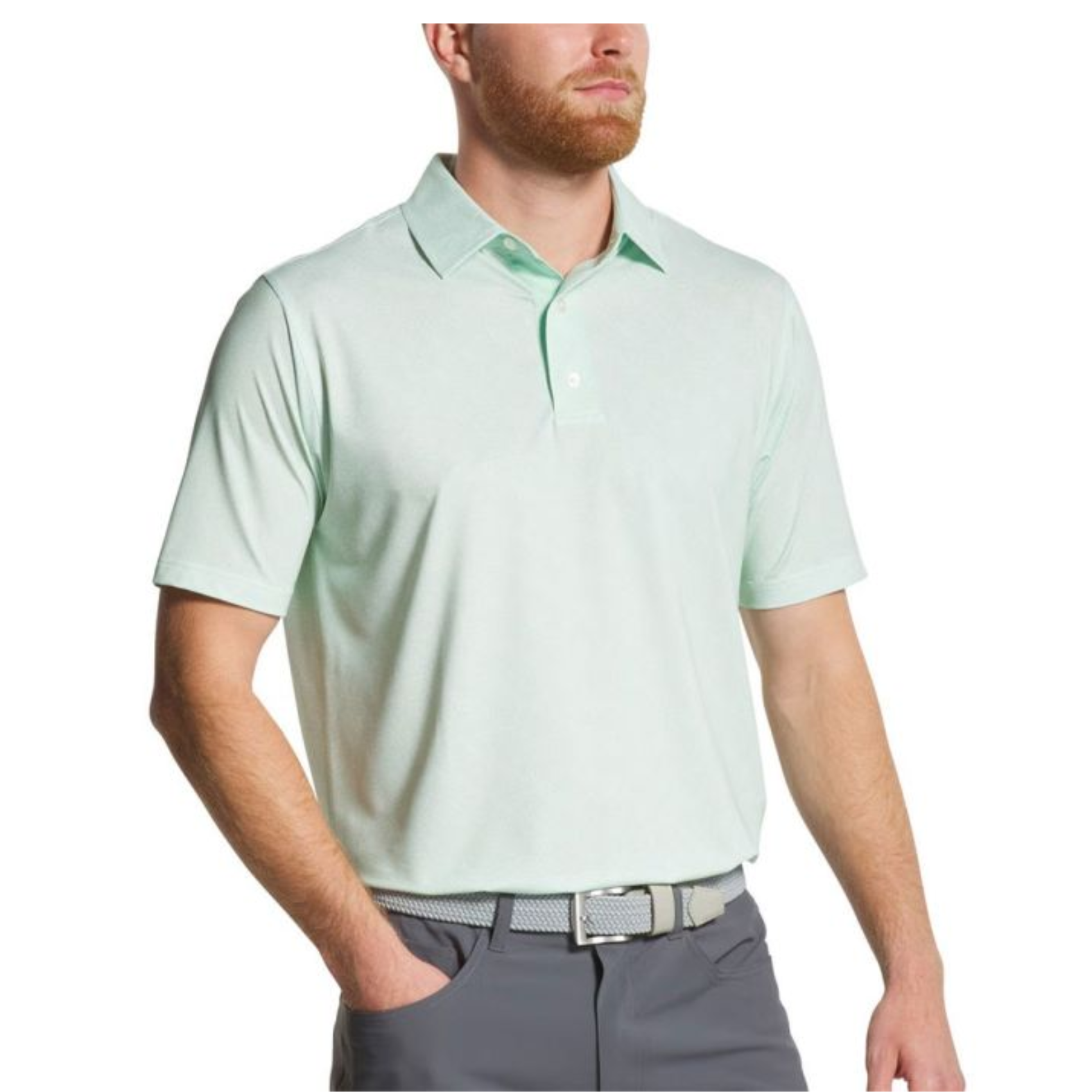 Infuse your golf outfit with refreshing style using the FootJoy Men’s Speckle Print Lisle Polo in Pistachio/White. Crafted from a premium blend of 88% polyester and 12% spandex, this high-performance polo delivers four-way stretch, ProDry® moisture-wicking fabric, anti‑microbial odor control, and UV protection—ideal for comfort on long rounds.