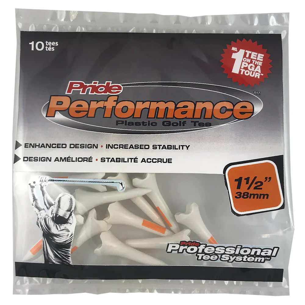 Pride PTS Evolution Clear Advantage: These are plastic performance golf tees from the Professional Tee System (PTS) line. They're designed with low‑resistance tips to reduce friction and help maximize drive distance—especially compared to traditional wooden tees