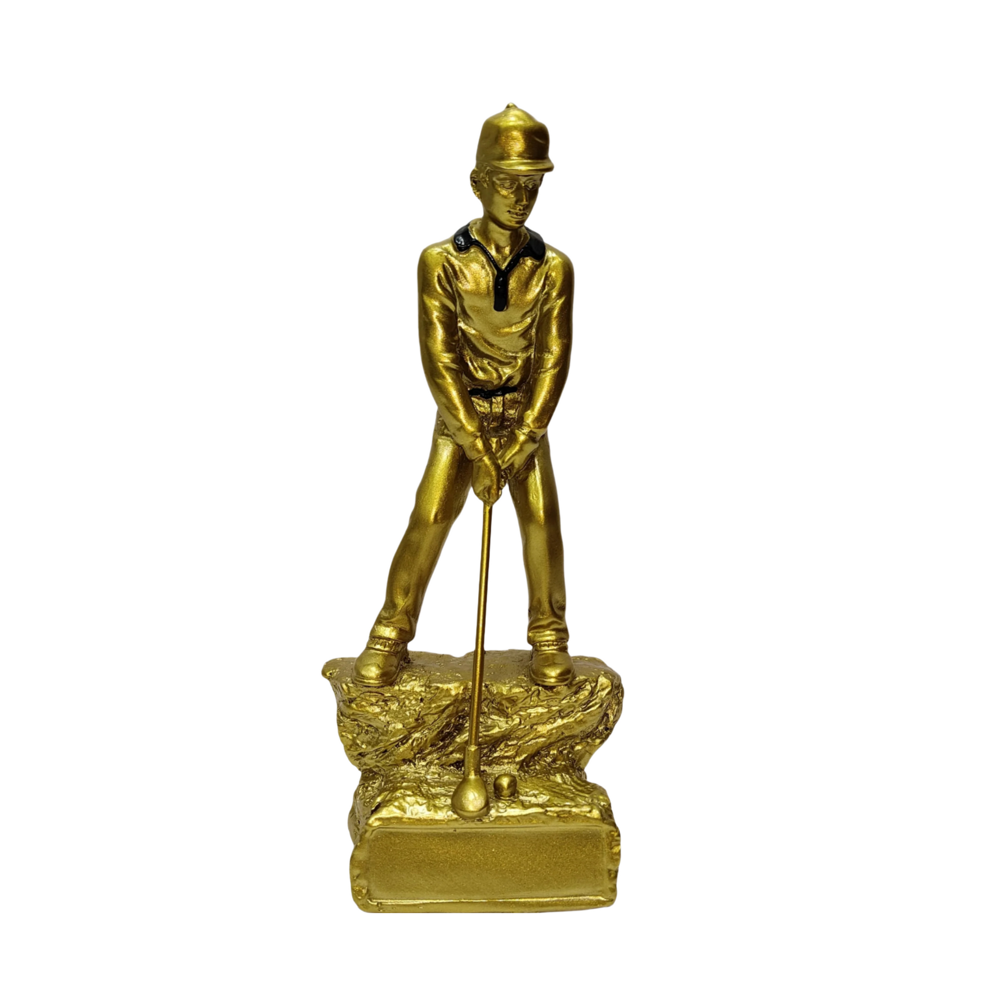 Discover the Golden Golfer Trophy BT‑54 from Bluetick Golf – a stunning gold-tone resin award with a poised golfer figure and personalized engraving base. Ideal for tournaments, club events, and gifts.